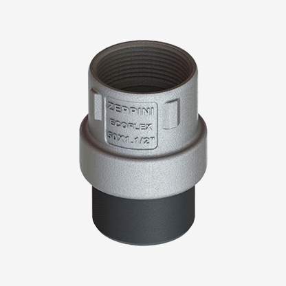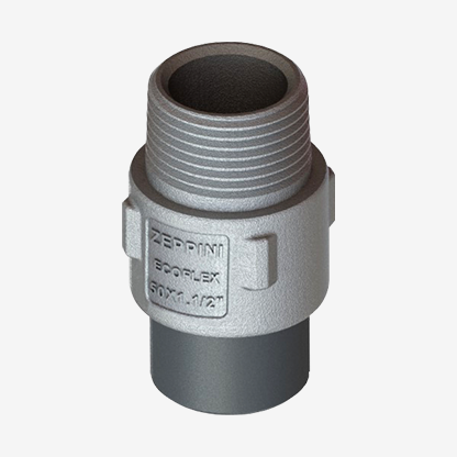Os Terminais Eletrosoldáveis da Zeppini Ecoflex são parte do Sistema de Tubulação Fuel Flex, contam com sistema de fixação entre componente plástico e metálico extremamente eficiente e seguro, e estão disponíveis em diversos diâmetros de 1/2 a 4 polegadas.